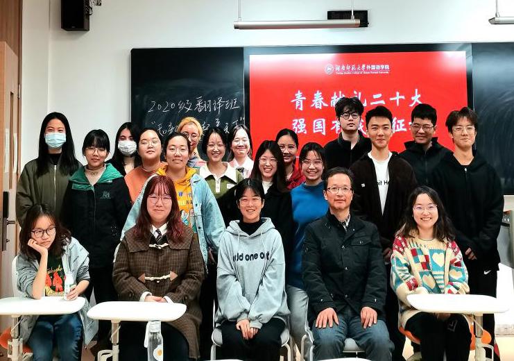 学院以班级为单位,学生自主、创新地开展思政实践活动。线上与线下相结合,室内讲座与室外实践相结合:如2021级朝鲜语班参观肖劲光故居,深入了解革命先辈事迹,传承红色精神;2021级法语班通过双语朗诵、短剧展演等方式开展实践活动,在互动中学习领会党的二十大精神。