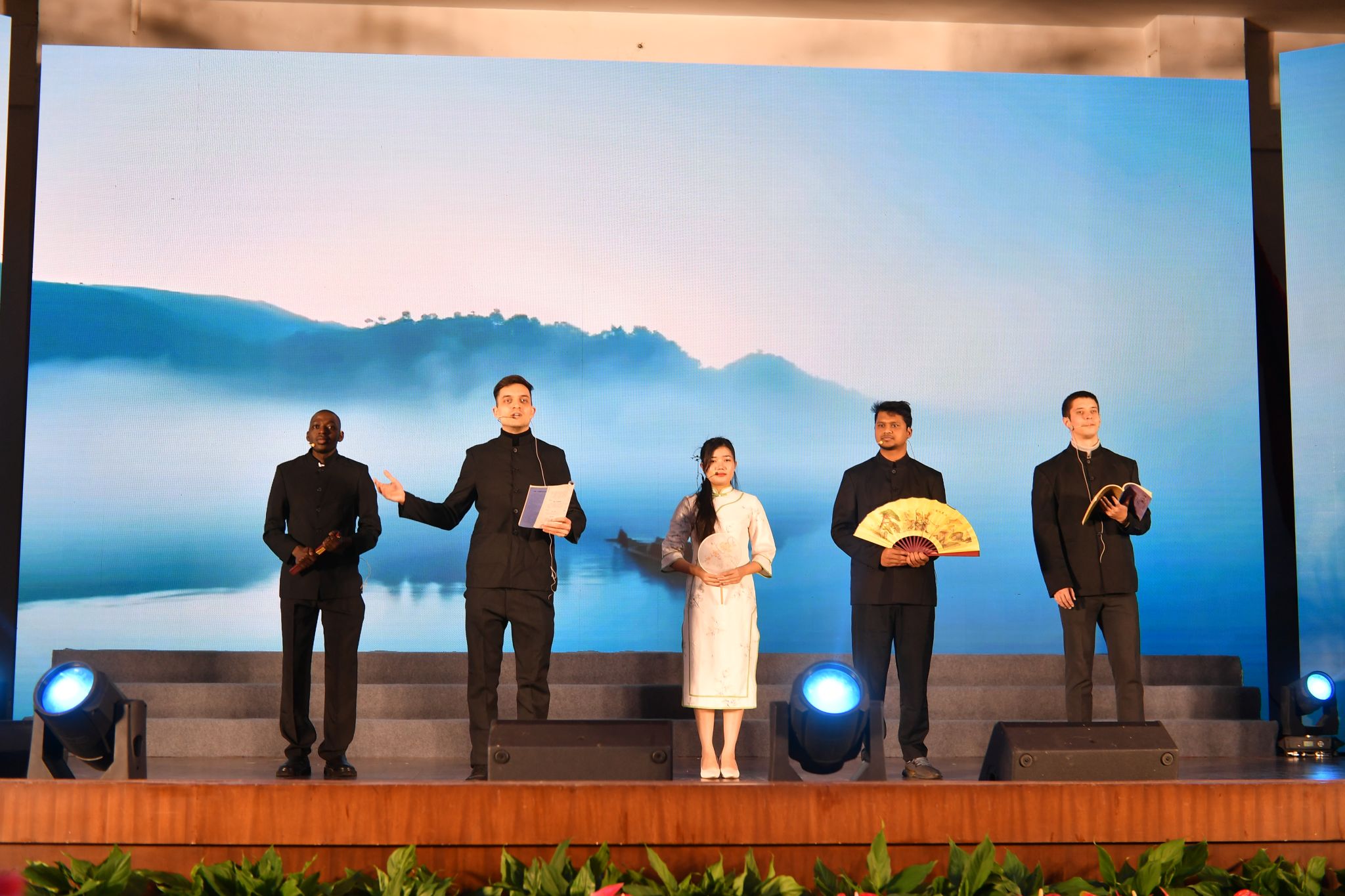 留学生代表表演作品《七律·答友人》,伟大诗篇在文化交融中历久弥新,在新时代展现出中国的大国胸怀,铺就着中国的锦绣前程。