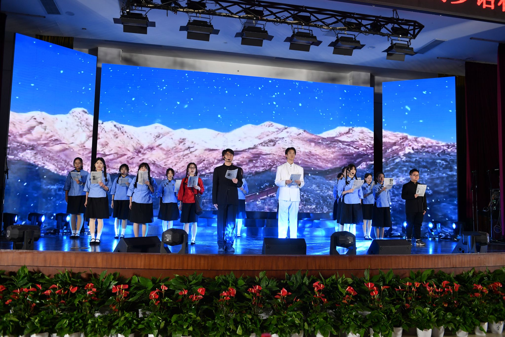 我校2018届校友廉书宇带来特邀节目《少年中国说》,在激昂的歌声中,朗诵会升至高潮,也渐至尾声。在演职人员登台合照的欢笑声中,活动圆满落幕。