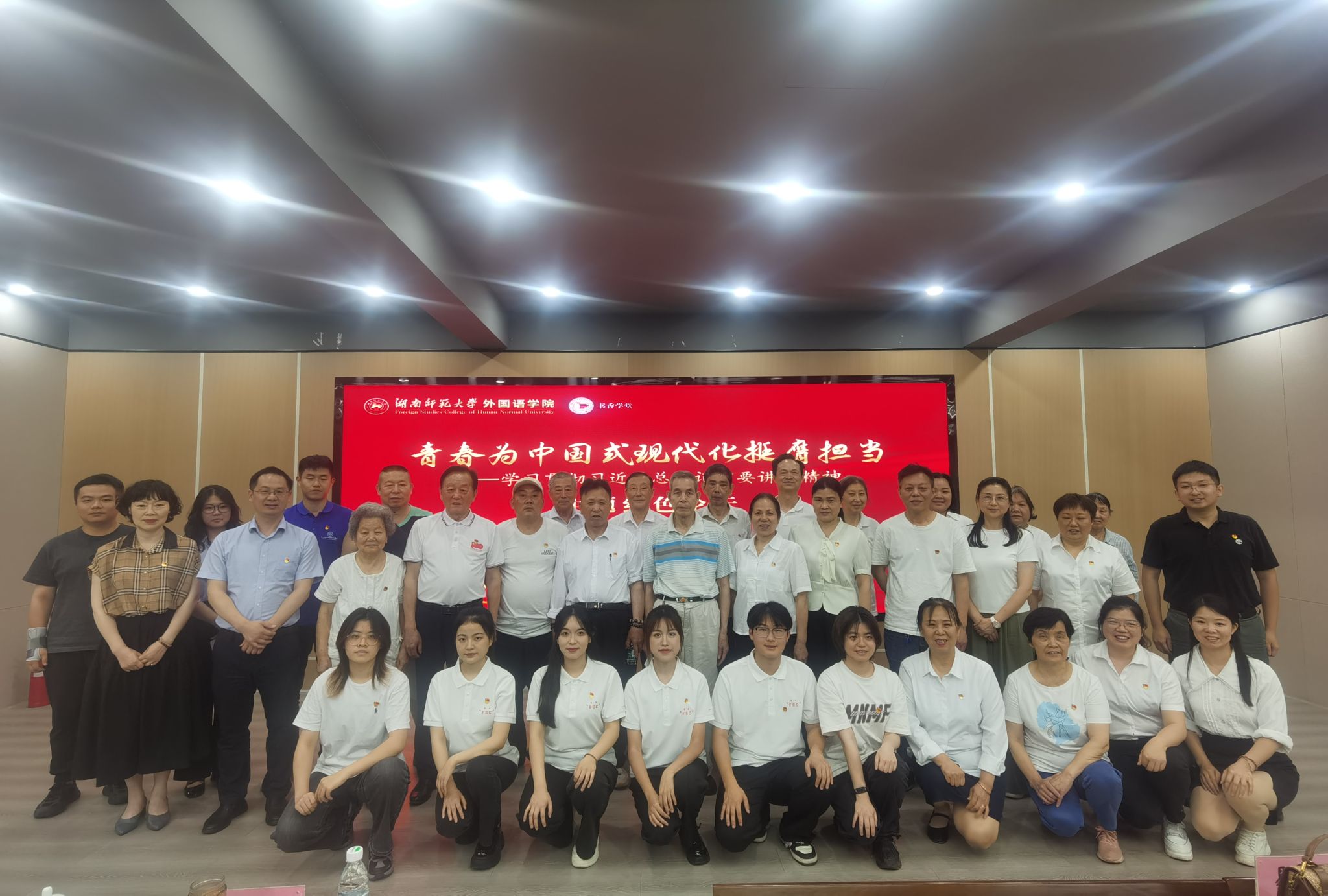 学院青年团员、研究生代表围绕学习实践经历和“乡村振兴”“社区实践”“文化传承”等关键词,讲述了在推进强国建设、民族复兴伟业中展现青春作为的生动故事。学院2021级西班牙语专业本科生莫若男结合在常德市谢家铺镇开展以乡村外语教育振兴为主题的社会实践的经历,诠释了青年一代在乡村振兴中的责任与使命;2022级法语专业本科生黄乐妍分享了在参与区校共建项目,开展国别文化课堂与爱语得乐夏令营活动中的志愿故事,表达了为社区事业贡献青春力量的决心;学院研究生第一党支部党员傅馨可分享了湘绣产业调研中的故事,她认为作为语言文化的学习者,肩负着传播中华文化的使命。