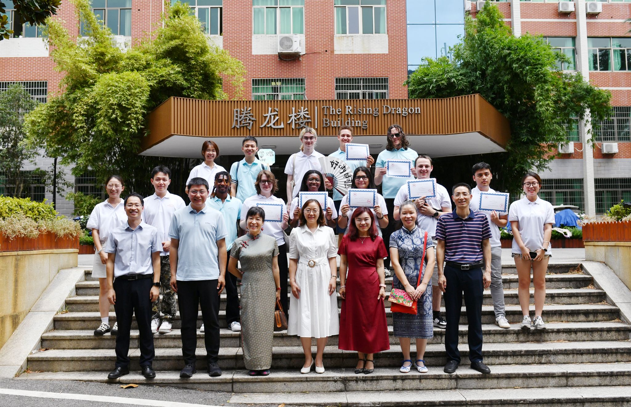 7月13日上午,英国基尔大学暑期学校结业仪式于九州最新登录网址腾龙楼204会议室举行。我校国际交流与合作处副处长李苗,学院党委副书记李蜜,学院副院长蒋莉华、梁斌,湖南省非物质文化遗产保护中心特聘讲师、中国结编织技艺传承人陈妙华,中国民间文艺家协会会员、长沙市工艺美术协会会员陈鸷,我校美术学院博士生秦丹蕾出席此次活动。多名志愿者代表参加此次仪式。仪式由学院翻译系主任马纳克主持。