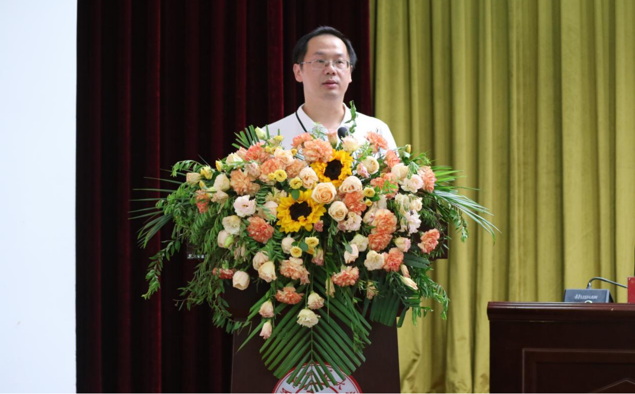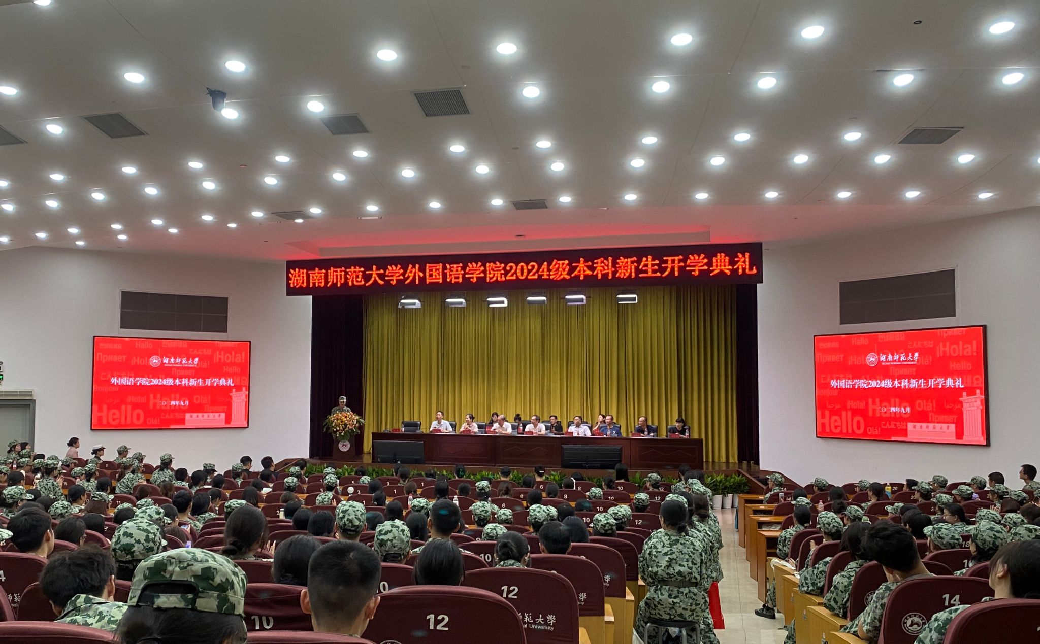 党委书记沈贤岚代表学院向新生们表达了热烈的欢迎和衷心的祝贺。他简要介绍了学院办学历史和办学成就,并希望同学们树立远大理想,传承湖湘文化,努力将个人发展和国家民族前途命运紧密联系在一起,主动融入到中外文明交流互鉴、国际传播、“三高四新”等国家战略中,做一名忠恕任事、追求卓越、勇担大任的外院人。