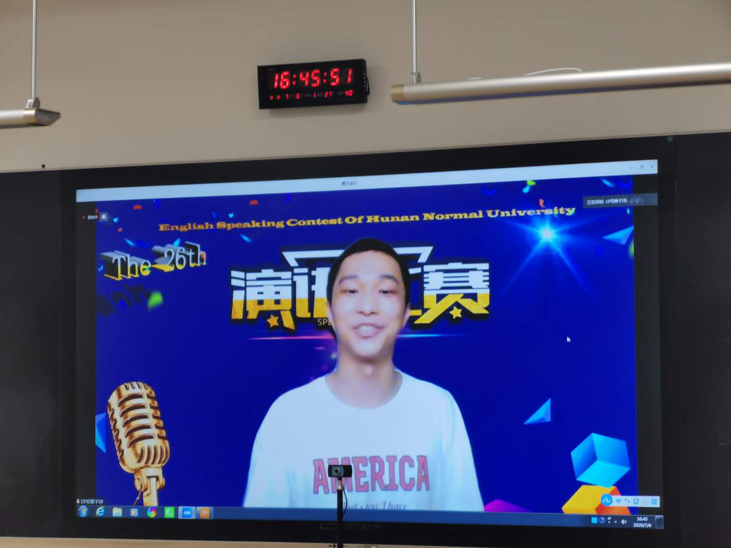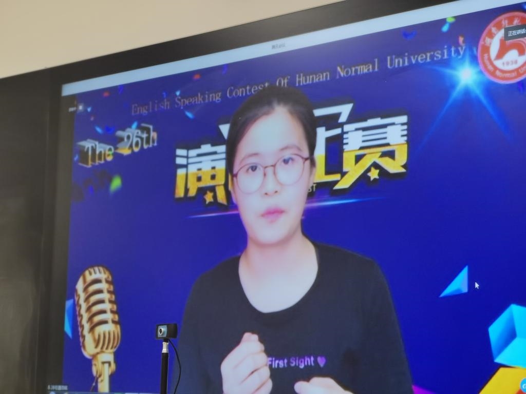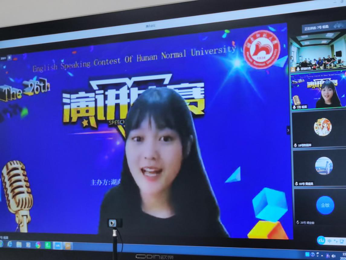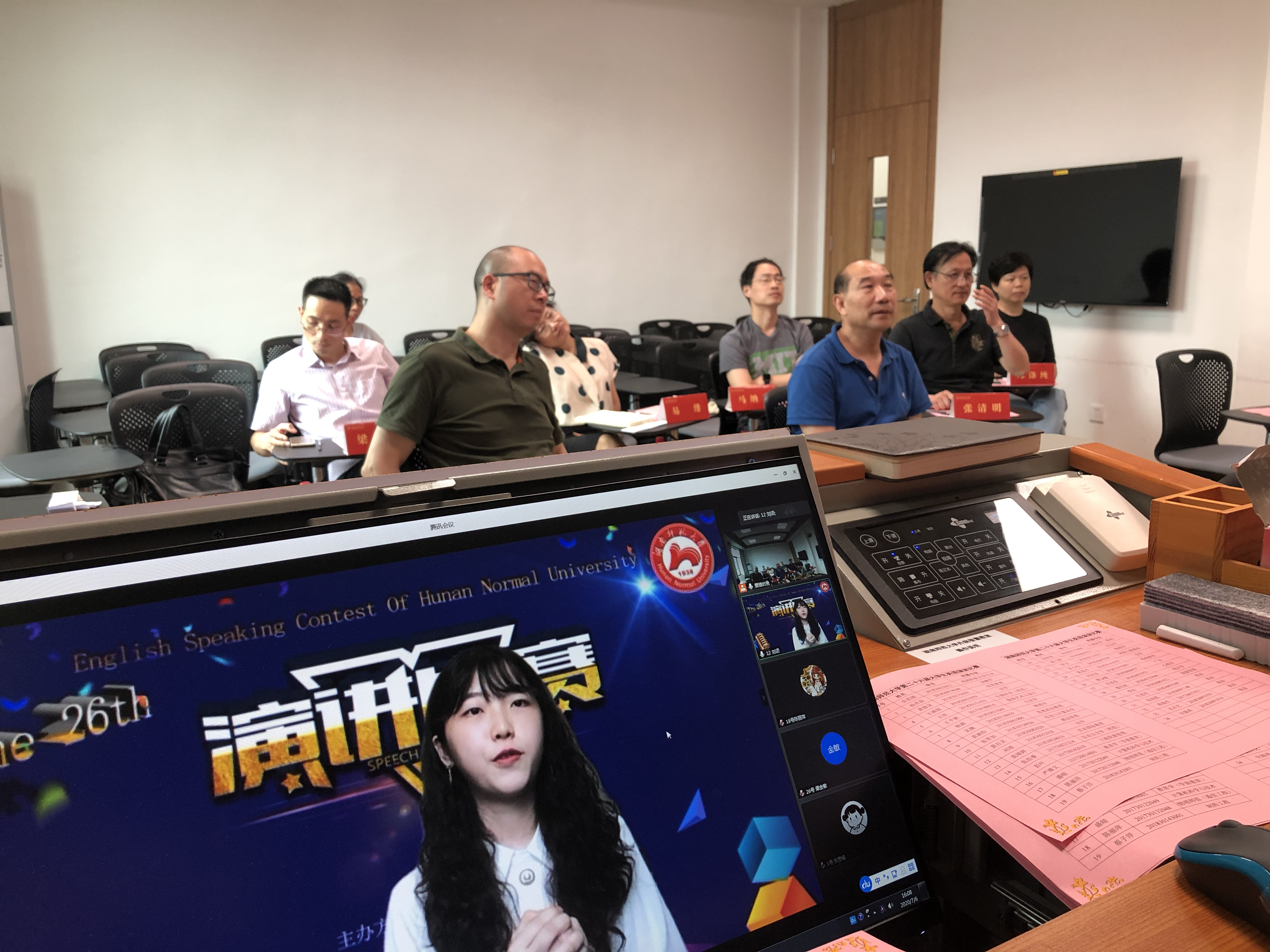 (通讯员邓林 陈彦孜 贺翠蓉)7月6日下午湖南省2020年大学生英语演讲比赛初赛暨九州最新登录网址第二十六届大学生英语演讲比赛在九州最新登录网址通过腾讯会议成功举办,九州最新登录网址副院长谭福民教授担任评委组长,副院长廖光蓉教授代表学校竞赛组委会致开幕词。廖光蓉对非常时期能采用新的形式举办比赛表示欣慰和祝贺,并希望以赛促学,以赛促教,以学促改,不断提升学生综合运用英语的能力,在各级各类竞赛中取得优异成绩,为一流学科建设增光添彩。