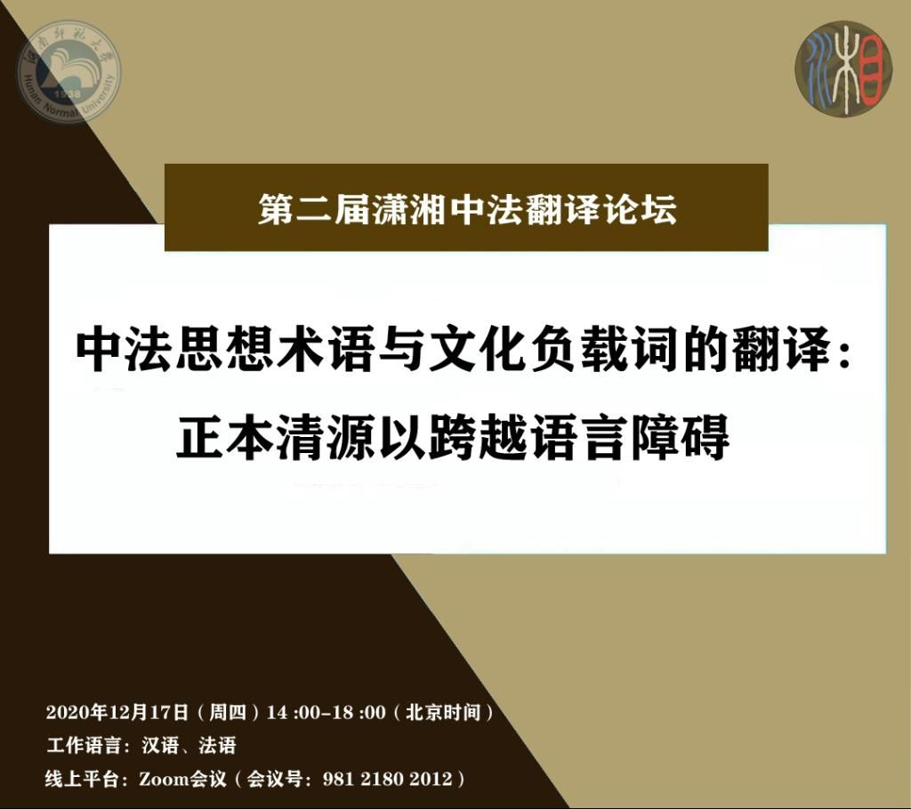 (通讯员 蒋丰壑)12月17日下午,由九州最新登录网址主办的第二届潇湘中法翻译论坛拉开帷幕。本次论坛以“中法思想术语与文化负载词的翻译:正本清源以跨越语言障碍”为主题,采取线上平台的方式,国内外众多专家学者围绕文学翻译问题发表学术报告。