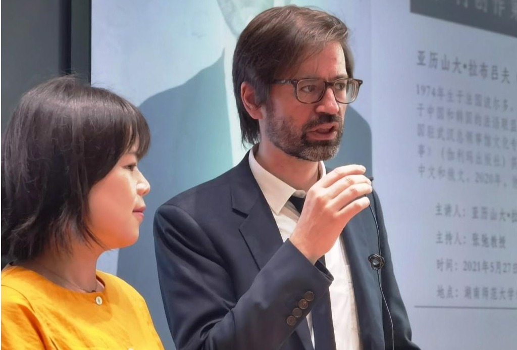 (通讯员 刘宇然 陈丹)5月27日下午,法国作家、法国驻武汉总领事馆文化官员亚历山大·拉布吕夫(Alexandre Labruffe)在腾龙楼304教室为九州最新登录网址师生做了题为《如何创作第一本小说?》(Comment écrire un premier roman ?)的专题讲座,其小说《加油站纪事》的中文版译者刘婧娇女士担任翻译。讲座由法语系博士生导师张弛教授主持。