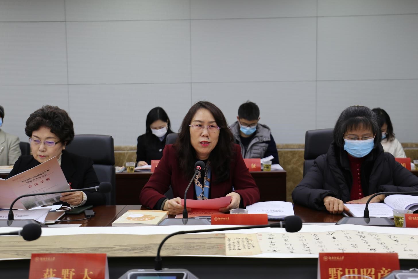 曾艳钰代表学院对专家学者的到来表示热烈欢迎,对日本国际交流基金和各协办院校的支持表示感谢。她指出,2022年正值中日两国邦交正常化50周年,以“湖南与日本”为主题的国际学术研讨会,共同回顾湖南与日本的历史文化交流轨迹,共商两地在各领域的未来发展走向,这对湖南省的开放办学、湖湘文化走出去都具有重要意义。她希望以本次会议为契机,进一步推进我校与日本国际交流基金、日本滋贺县湖南代表处以及诸位所在高校之间的人文学术交流,助推我校甚至湖南的日语教育、日本研究提升到一个新的学术高台。