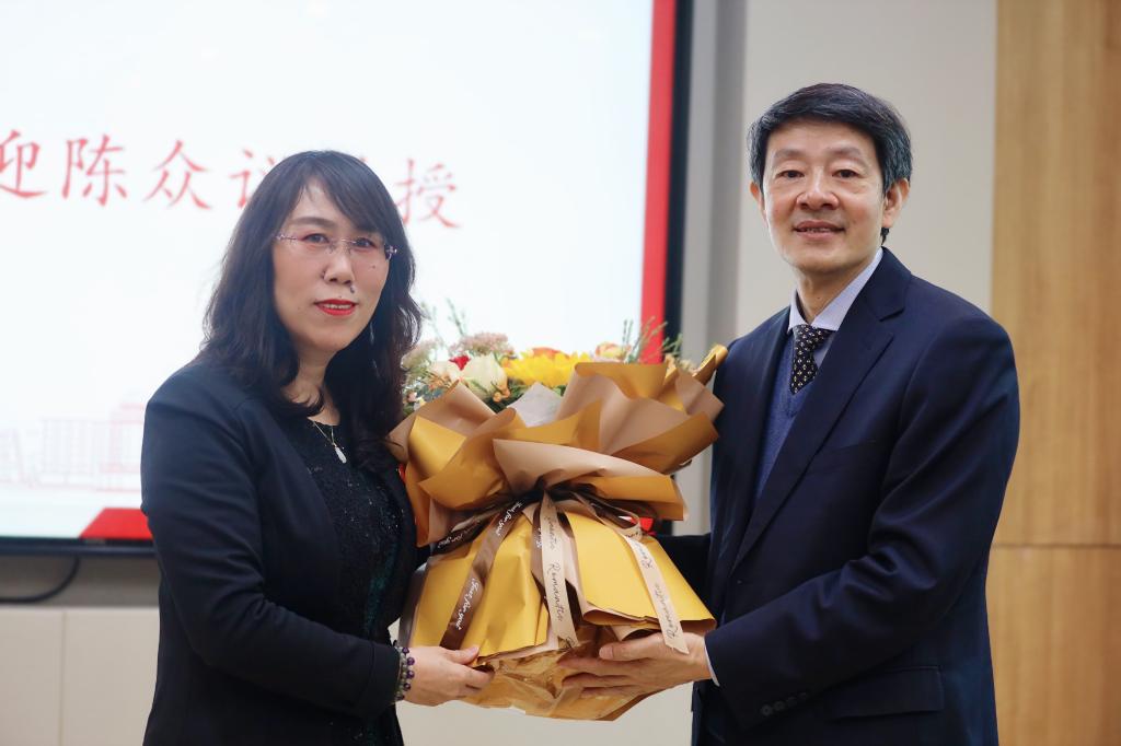 仪式上,唐贤清介绍了陈众议教授的求学经历、研究方向、任职经历等基本情况。