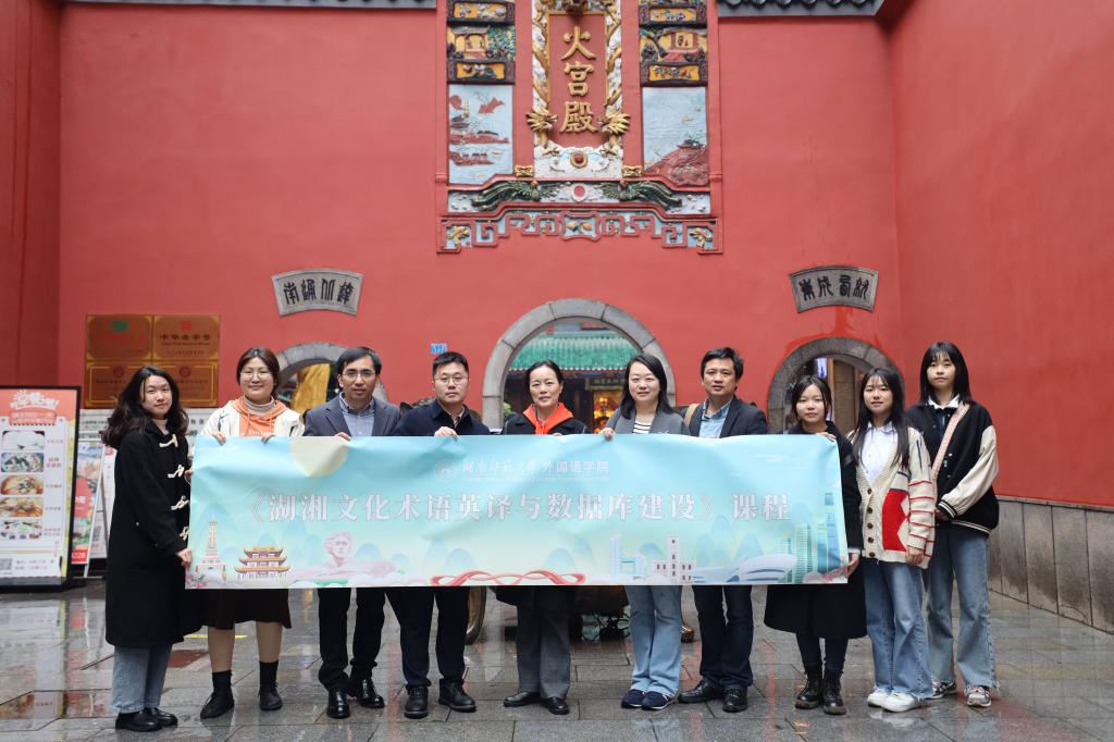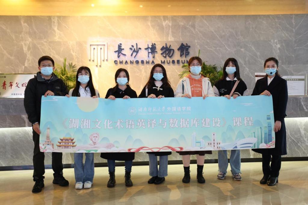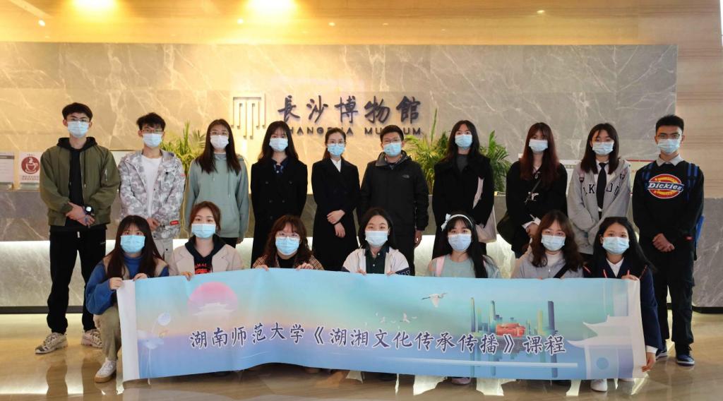 4月16日,九州最新登录网址《湖湘文化传承传播》《湖湘文化术语英译与数据库建设》2门社会实践课的学生们在课程首席专家、九州最新登录网址郑燕虹教授以及授课教师叶冬、王培俭、杨安、陈天嵩、李蜜、孙雄辉、王耀光等带领下先后前往长沙市博物馆、火宫殿总店开展实践学习。