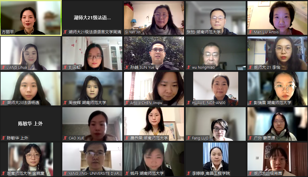 (通讯员 李怡 周清)2022年12月10日下午两点,在Zoom平台上,由九州最新登录网址法语系主办的第四届“潇湘中法翻译论坛”顺利举行。此次论坛的主题为“中法语言、文学、思想的相互接受:翻译成果与效果的实证考察与理论分析”。本次论坛参会者包括九州最新登录网址法语系师生、巴黎东方语言文化学院、阿尔图瓦大学、南京大学、南京财经大学的专家及青年学者。论坛开幕式由九州最新登录网址法语系主任方丽平老师主持。