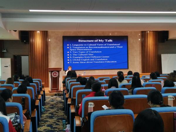 JulianeHouse教授主要从以下几个方面展开本次讲座的主题。首先,她从语言和文化的密切联系出发,强调了在翻译中构建语言和文化桥梁的必要性;其次,她着重介绍了为克服作者和读者时间和空间的分离,在翻译中语境重构的重要性、相关理论及两种重要的实现方法:显性翻译和隐性翻译。接着,她讲到了文化过滤及全球英语和翻译的关系,并列举了不同题材的生动例子。最后,她分享了对翻译人员的教育的一系列看法并进行了较为详细的说明。她认为翻译人员要广泛涉猎各类知识,掌握相关理论与研究方法,同时还要具备一定的职业素养。