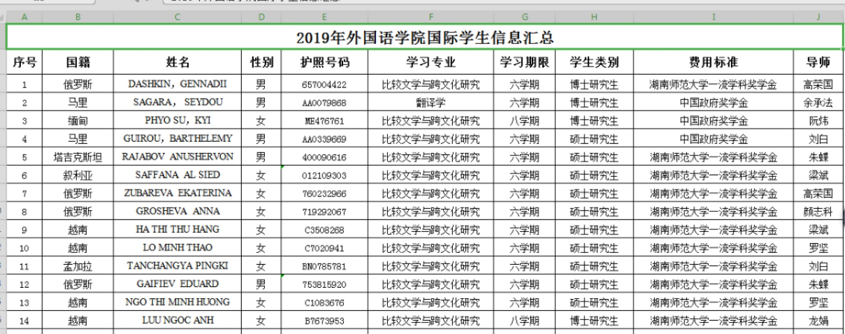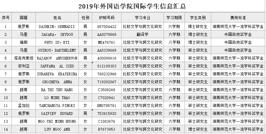 参与此次项目的留学生总共14人,其中博士研究生4名、硕士研究生10名,来自俄罗斯、孟加拉、叙利亚、越南、缅甸、马里和塔吉克斯坦六个国家,具体学生名单如下:DASHKIN GENNADII、SAGARA SEYDOU、PHYO SU KYI、GUIROU BARTHELEMY、RAJABOV ANUSHERVON、 SAFFANA AL SIED、ZUBAREVA EKATERINA、GROSHEVA ANNA、HA THI THU HANG、LO MINH THAO、TANCHANGYA PINGKI、GAIFIEV EDUARD、NGO THI MINH HUONG、LUU NGOC ANH.