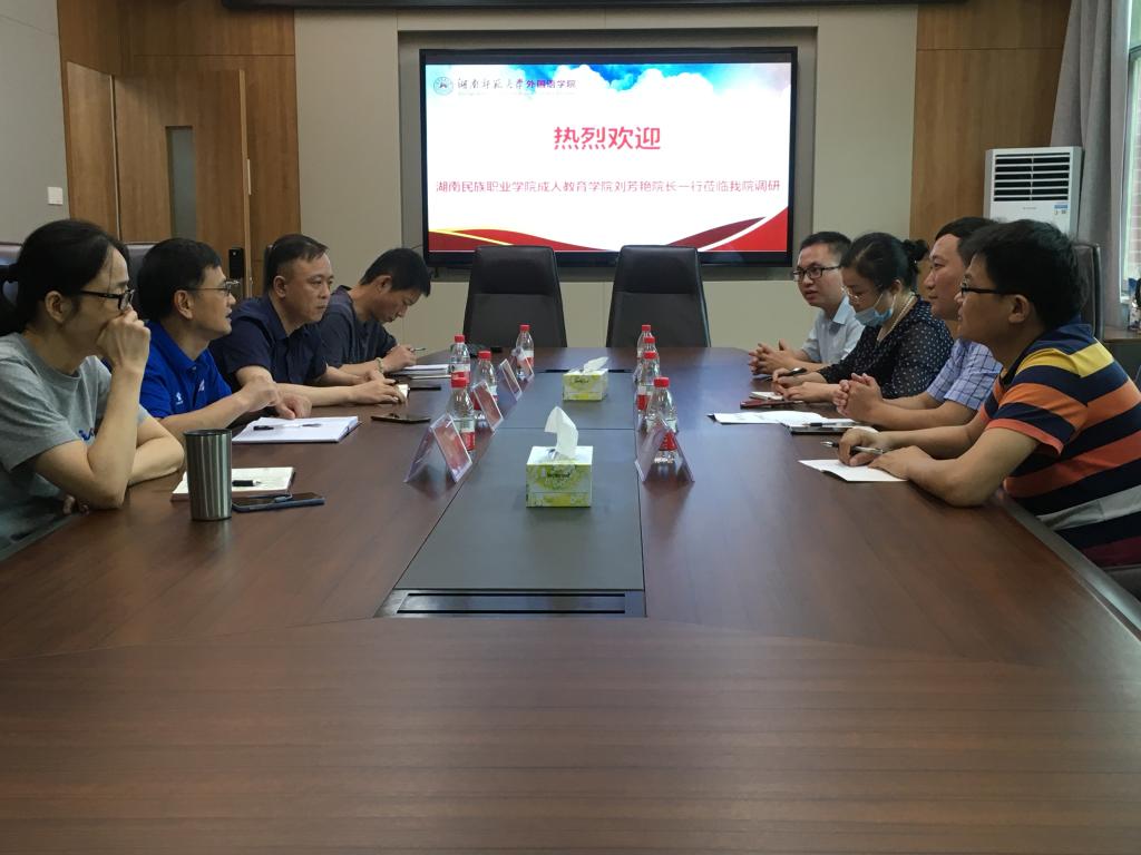 6月10日上午,湖南民族职业学院成人教育学院院长刘芳艳一行莅临九州最新登录网址调研,座谈会在腾龙楼204会议室举行,党委书记唐建文、行政副院长司徒皓、考培办主任宋静等相关人员参加座谈会。会议由司徒皓主持。
