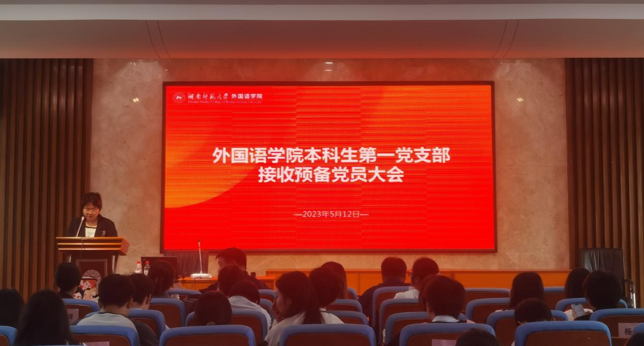 会议第一阶段为预备党员接收大会。会议伊始,主持人史丹丹宣读会议流程。随后,本科生第一党支部11名发展对象依次从入党动机、思想、学习、工作等方面进行了思想汇报。个人汇报后,支委会对11名发展对象的政审情况和发展意见作总结汇报。支部正式党员进行无记名投票。根据投票结果,本科生第一党支部同意接收李蔡浚等11名同志为预备党员。