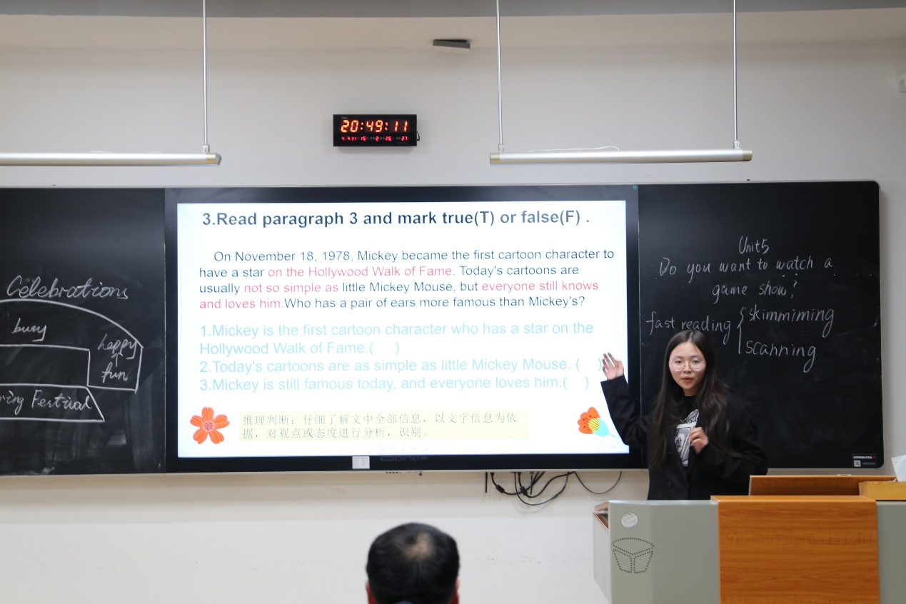 模拟赛伊始,李蜜对参赛选手提出期望,希望各选手认真备赛,努力取得好成绩。在模拟赛中,各参赛选手使用清晰美观的多媒体课件、以大方得体的教姿教态进行教学,在十分钟的模拟赛中充分展现自身的教学能力。赛后,两位专家评委对每一位选手的表现进行全面、详细的点评并给予指导。