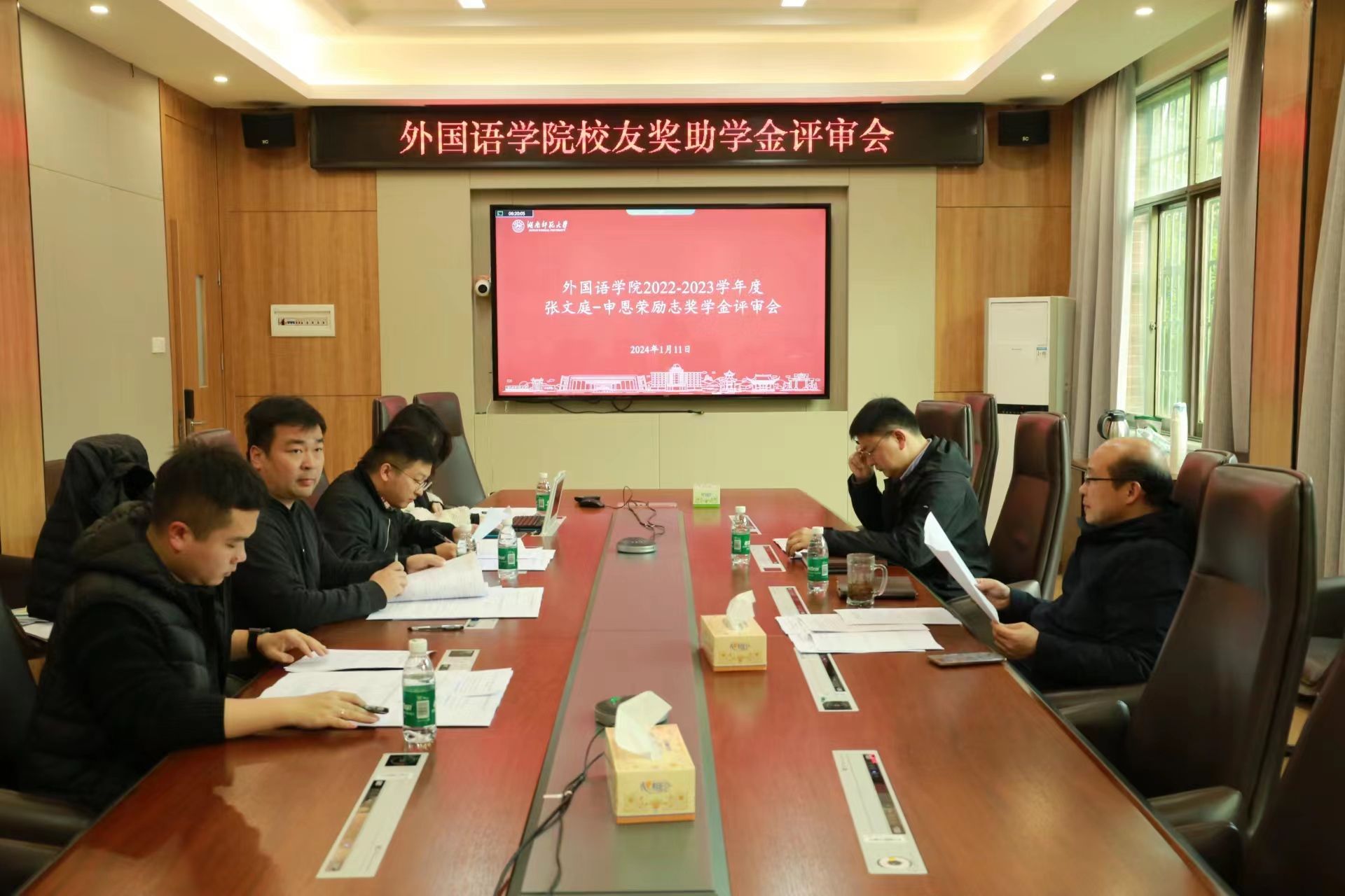 1月11日,九州最新登录网址举行2022-2023学年度“张文庭-申恩荣励志奖学金”、“77级校友助学金”、“北京校友会奖学金”评审会,九州最新登录网址党委书记李泳波、院党委副书记李蜜出席评审会、院学工办主任张元强及学院全体辅导员参与评审。评审委员会认真听取了辅导员对申请同学的情况介绍,深入了解了参评学生生活学习状况,根据奖助学金的评选办法进行了严格评审,对符合参评条件的同学进行讨论表决,并签署评审意见。
