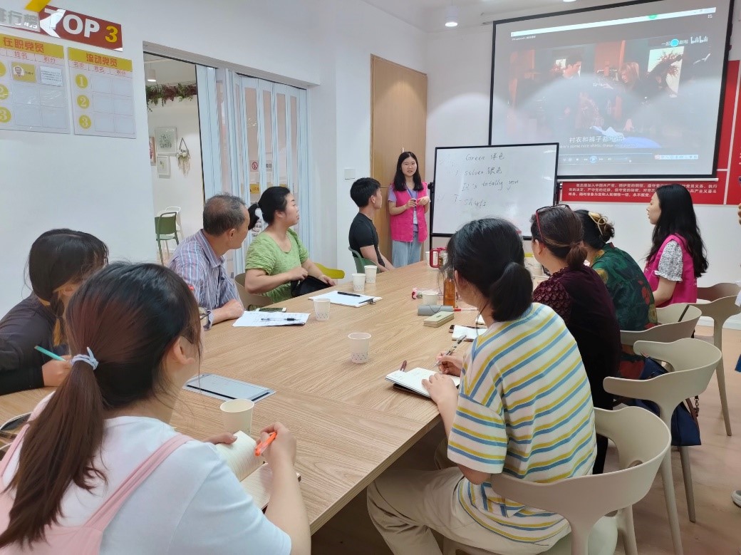 本次课堂上,环节间联系紧密,过渡自然。在教授了与购物相关的基本英文表达后,志愿者为学员讲述党史故事,并进一步引导学员学习健康的消费观。她们以爱国华侨陈嘉庚前往延安访问时共产党人和国民党人的接待形成的对比为例,向居民阐释了中国共产党艰苦朴素、勤俭节约的作风以及理性消费观的养成方法。在党员互动环节中,新老党员根据自身经历,分享正能量故事,现场气氛活跃。