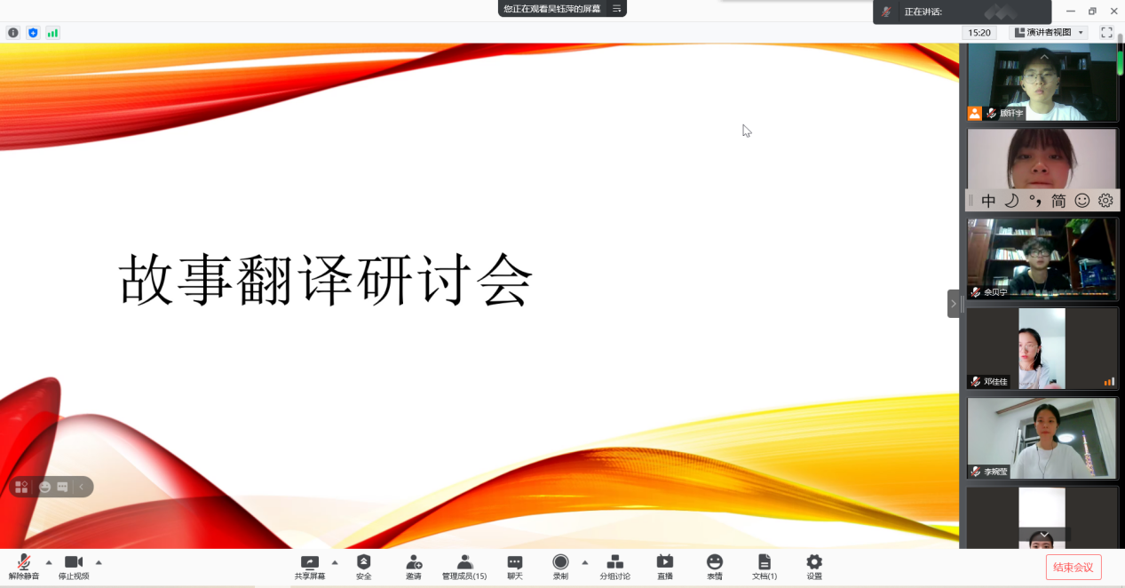 此次会议一共分为两个部分,分别是探讨雷锋小故事翻译和其他红色故事翻译。
