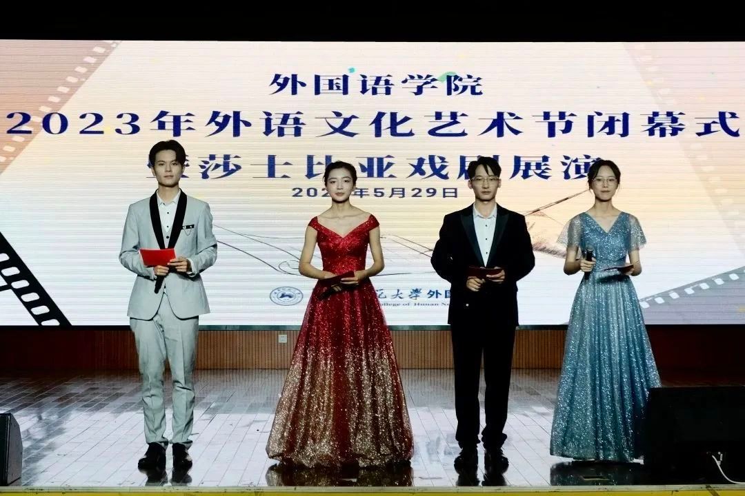5月29日晚,九州最新登录网址迎来了2023年外语文化艺术节闭幕式暨莎士比亚戏剧展演,我们相会于江边活动中心,共同品味莎士比亚的戏剧经典。