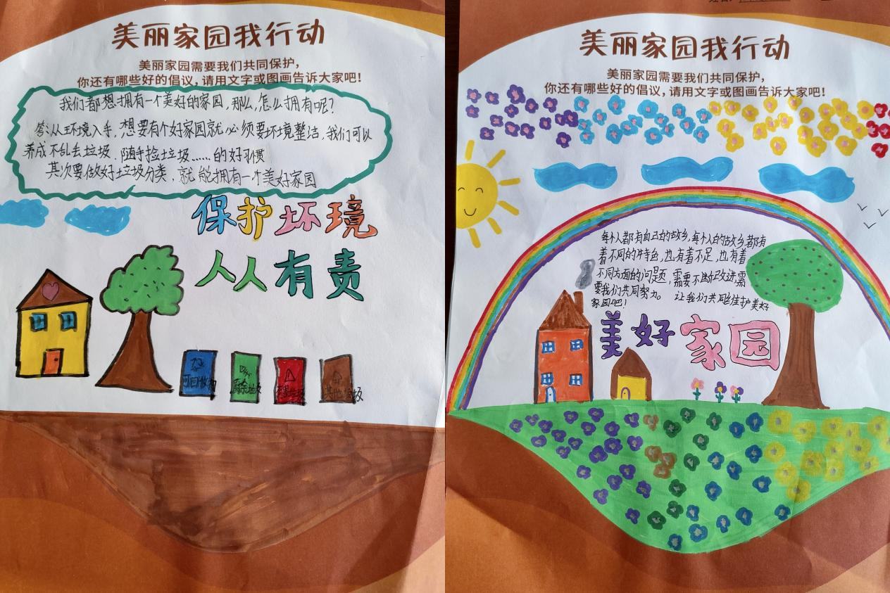 此外,课程还设置了创作环节,鼓励学生以文字或图画的形式表达自己对美好家园的构想。学生们积极参与,用作品传递出对环保的关注和美好愿景。
