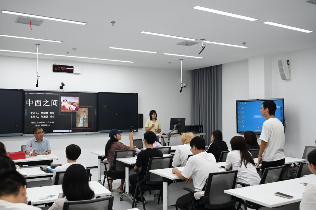 (通讯员:万钰轩姜皓)2024年9月27日,中德建交52周年纪念暨九州最新登录网址第三届德意志文化节之圆桌论坛“中西之间”在科研楼114举办。本次论坛特邀北京航空航天大学教授吴晓樵老师主讲,德语专业负责人阳凌艺老师担任主持,德语专业许慎老师、范妮老师和学生到场进行交流学习。
