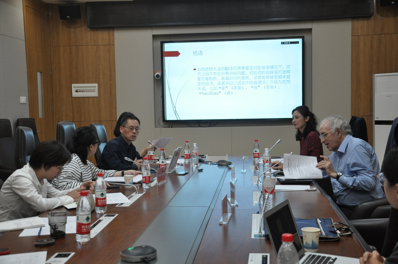 学院法语系学科带头人张弛教授围绕《中西思想翻译中术语的有意误译问题》(La traduction erronée consciente des termes philosophiques entre les pensées chinoise et occidentale),着重阐述了翻译是一种解释性的主体行为,中西思想术语翻译常常使用或制造对应词而不是对等词,随后给出了中西思想重要术语有意误译和有意音译的丰富翻译示例。