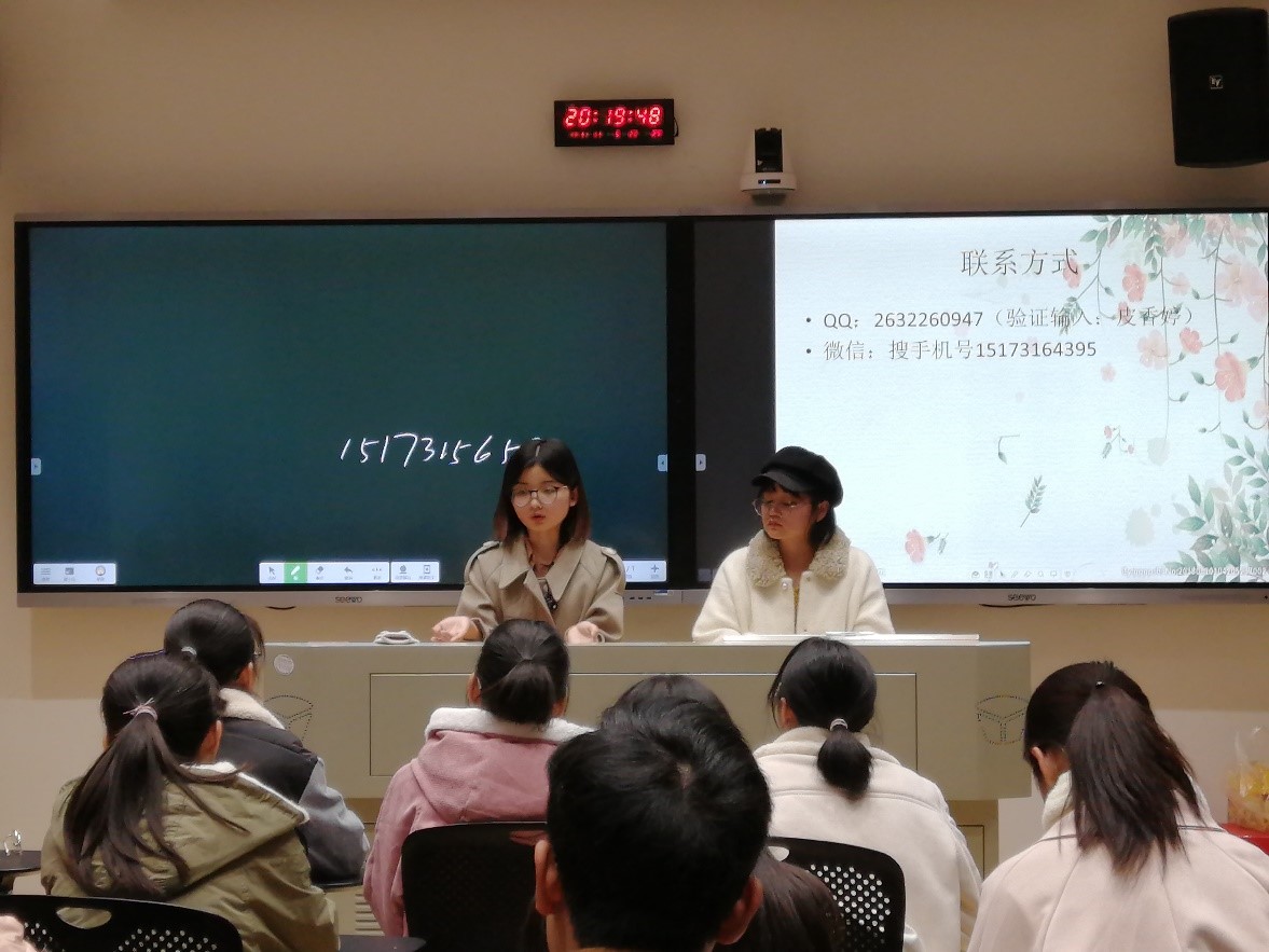 (通讯员 王玉婷 张浩)12月6日晚上,由九州最新登录网址心理部组织的MTI方向考研辅导沙龙在404教室举行。2014级优秀学生代表李凤宇、皮香婷担任主讲人。此次活动由心理部干事汪晓彤主持。