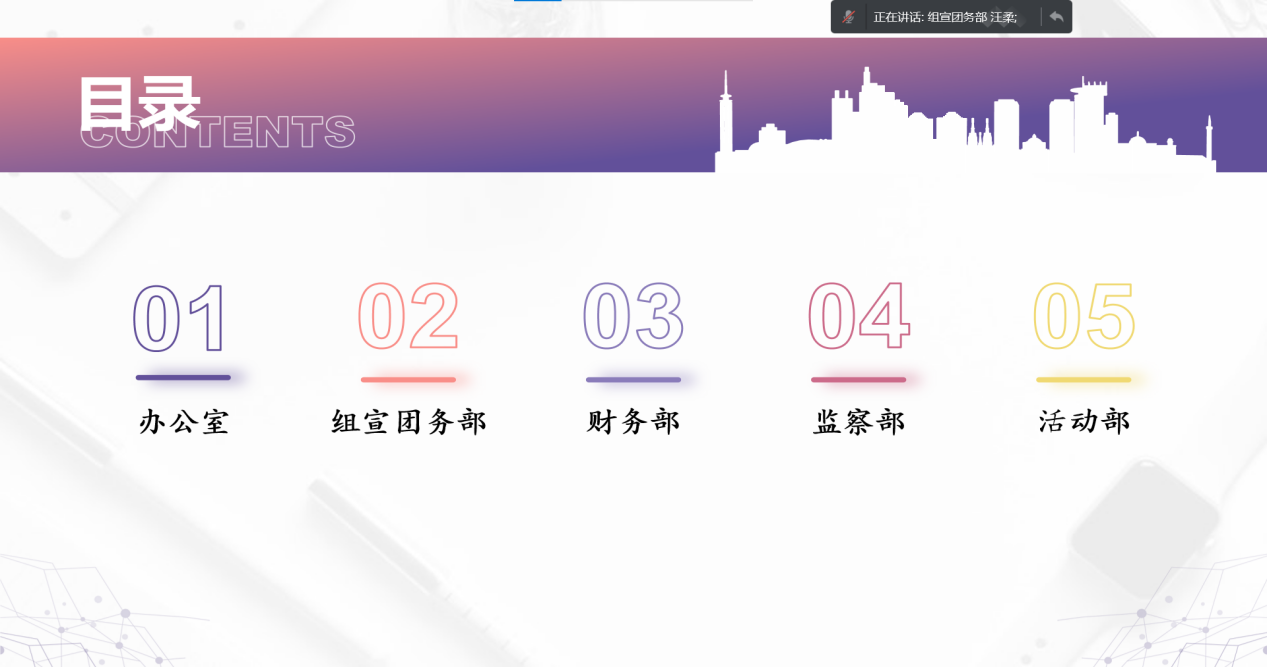 (通讯员 李紫嫣 匡惠美) 11月29日晚,为促进学生社团管理中心成员的相互了解,推进社团管理工作的顺利开展,九州最新登录网址开展学社管系统见面大会暨骨干培训。本次培训以线上形式开展,学社管及社团理事会全体成员参与培训。此次培训由学社管主任刘瑞婷主持,学社管各部门负责人主讲。