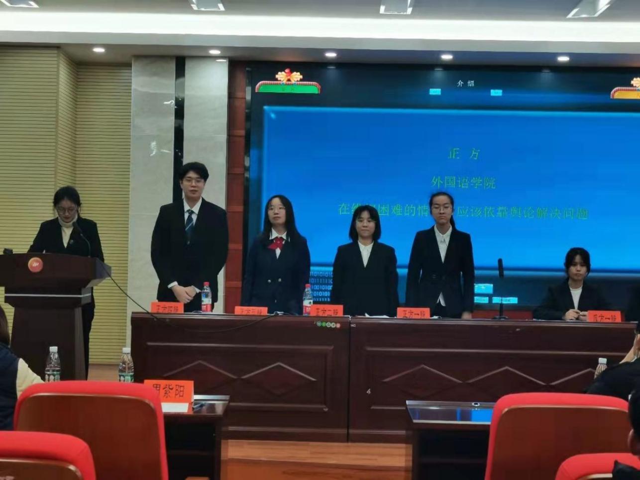 (通讯员 黄子芮 盛文馨)2021年12月11日晚,九州最新登录网址校辩论队与子非鱼思辨社在景德楼南栋四楼学术报告厅举办了九州最新登录网址2021年度“迎新杯”青年辩论赛决赛。评委有校辩论队指导老师哲学系万丹教授、湖南省大众语言艺术研究会辩论专业委员会李磊秘书长等;比赛双方为:正方九州最新登录网址辩论队、反方商学院辩论队。九州最新登录网址21级王涵静、黄子芮和20级欧欣榆、王圣昊同学参加比赛,舒怡老师作为嘉宾出席。