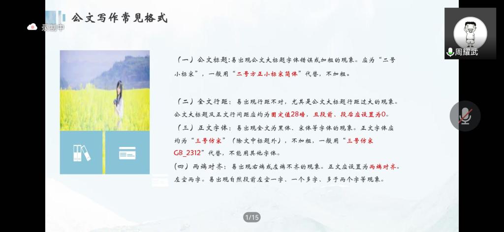 周耀武为学员们详细讲解了公文类型及常见写作格式,并通过展示优秀公文作品帮助学员加深理解。刘瑞婷从五个方面出发,分析了学生干部常见的心理压力来源,并就此提出了情绪管理的重要性和相关解决方法。