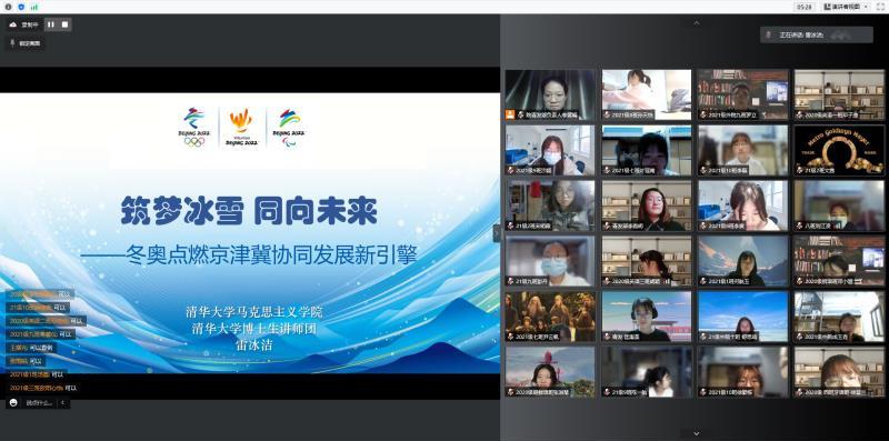 主讲人雷冰洁以“筑梦冰雪,同向未来——冬奥点燃京津冀协同发展新引擎”为主题,从经济合作、产业互补等角度向学员们分析了北京冬奥会能够推动京津冀协同发展的原因,并指出冬奥会的举办是京津冀地区协同发展实现新突破的过程。