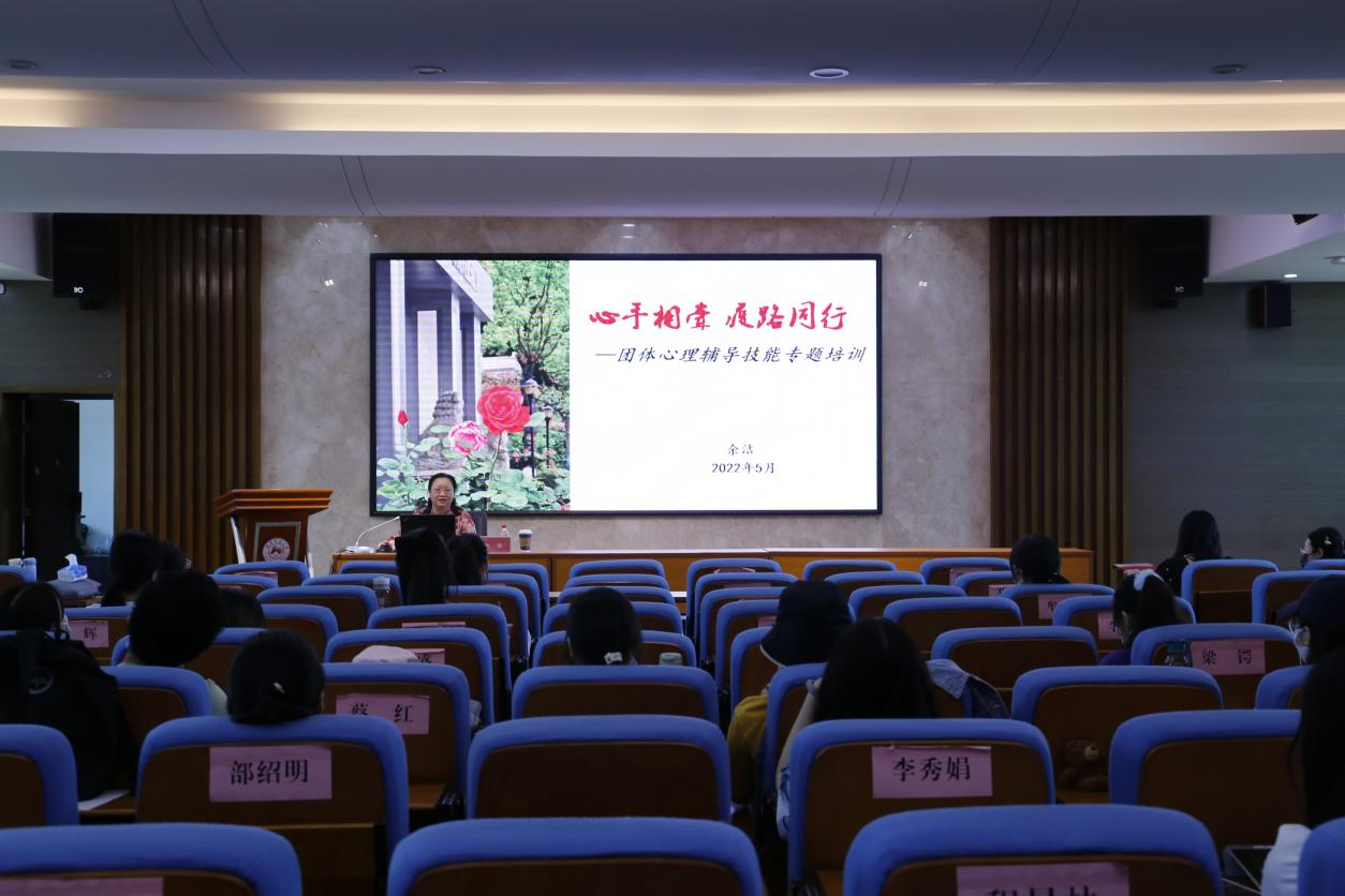 余洁向同学们简单介绍了我校学生工作部心理健康与教育咨询中心的基本情况、发展历程以及取得的成就。她还围绕“心手相牵,疫路同行”这一主题,以学校历年举办的团体心理辅导活动为例,对团体心理辅导活动做了全面详细的讲解,指导同学们如何开展团体心理辅导活动,并呼吁同学们积极组织、参与团体心理辅导活动。在讲解团体心理辅导活动的过程中,她说明了团体心理辅导活动和其他类型的心理辅导活动的不同之处,强调了团体心理辅导活动的特点和优势。