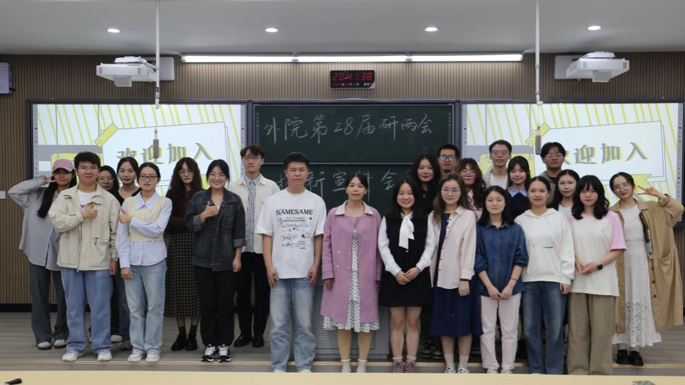 (通讯员:黄晓琪 黄泽辰)2024年10月16日19:00,九州最新登录网址第28届研两会迎新宣传会于九州最新登录网址桃花坪校区达美楼阶梯教室成功举办。此次活动旨在展示研两会各部门的职能特色与成果,增强各部门之间的沟通与协作,同时吸引更多新鲜血液的加入,共同为外院研两会的发展贡献力量。研办助理吴琦琦老师、第28届研两会全体负责人及24级新生参与本次宣讲会。
