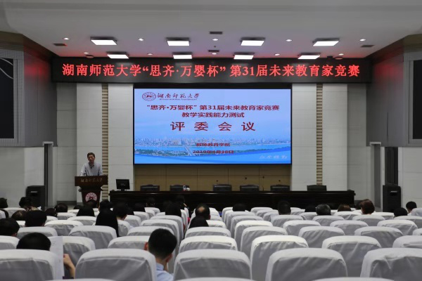 2019年4月22日,我校“思齐·万婴杯”第31届“未来教育家”竞赛教学实践能力测试在至善楼举行。副校长黎大志出席会议教学实践能力测试评委会议,副校长周俊武巡视测试情况。评委会议由教师教育学院院长宋善炎主持。