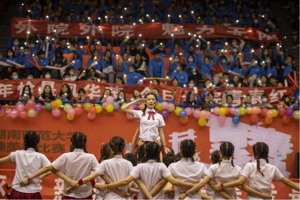 据悉,此次比赛由共青团九州最新登录网址委员会、校学生会主办,各学院学生会分会协办,共有本科生20支、研究生11支队伍参赛。九州最新登录网址本科生队带来的是Ten Decades To Today,研究生队带来的是《灯火里的中国》。两队出场时,外院学子高呼“外院外院,魅力无限”为参赛选手加油鼓气,口号声响彻全场,振奋人心。队员们动作明快奔放、节奏鲜明、刚柔相济、青春靓丽,赢得现场阵阵喝彩。他们用身姿编织青春的浪漫,献礼中国共产党成立100周年。