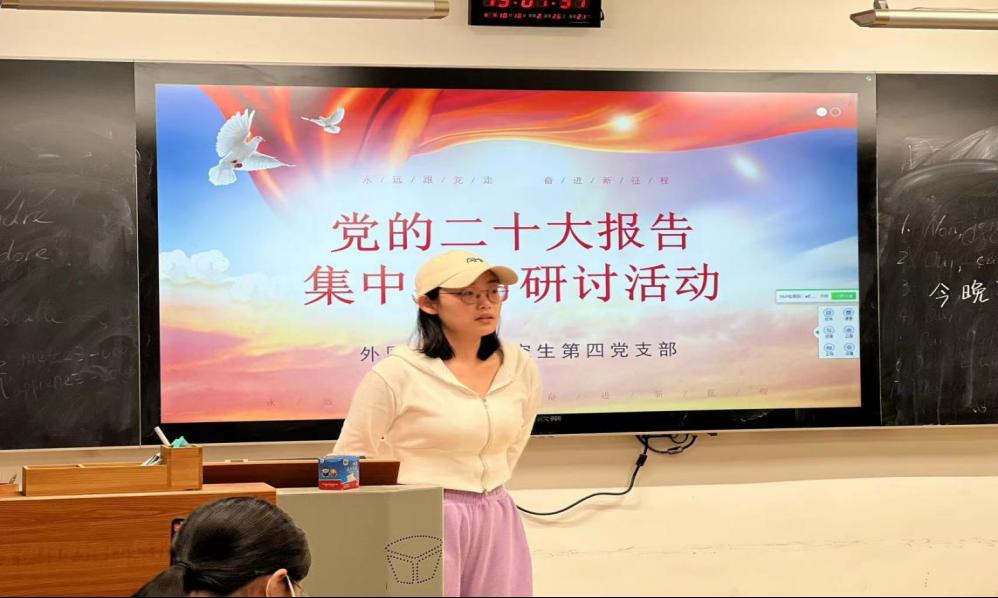 活动伊始,党支部副书记杨宇同志向参会同学表示热烈欢迎,并简要介绍了整个研讨活动的流程。接下来,所有党员观看了习近平主席在二十大报告中的核心观点集锦,集中学习了习近平同志在中国共产党第二十次全国代表大会上的报告精神。