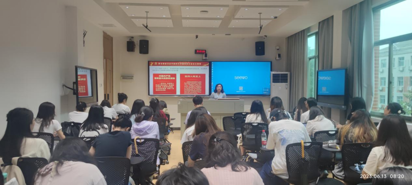 (通讯员 熊丹)2023年6月13日8时,蒋莉华副院长在腾龙楼304为九州最新登录网址研究生第三党支部讲授党课,主题为“把握习近平新时代中国特色社会主义思想的世界观和方法论。”九州最新登录网址研究生第三党支部全体党员出席。