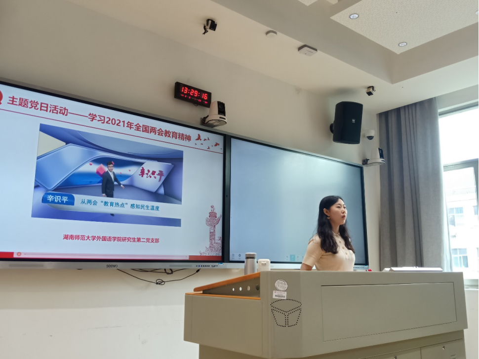 (通讯员 王源)2021年3月15日中午13:00,九州最新登录网址研究生第二党支部于腾龙楼304教室开展了主题为“学习2021年全国两会教育精神”的主题党日活动。