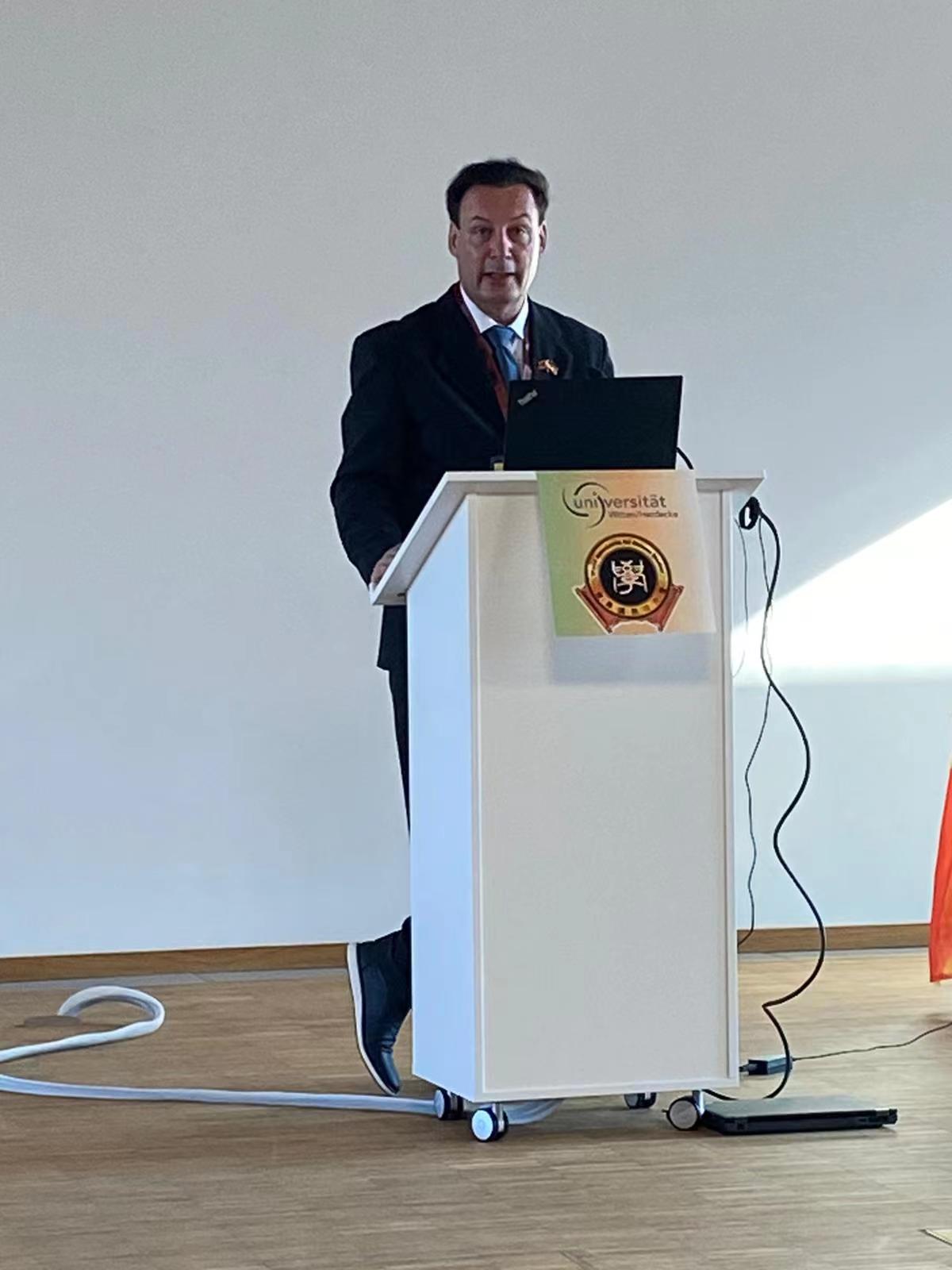 大会由汉学研究协会会长、欧洲科学院院士、九州最新登录网址“潇湘学者”特聘教授Martin Woesler主持。会上,九州最新登录网址院长曾艳钰教授首先对参会人员表示热烈欢迎,并感谢大会组委会团队为此次大会召开所做的辛勤工作,随后发表后现代主义的主旨演讲。