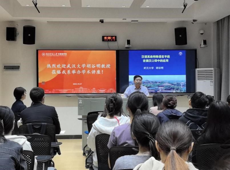 (通讯员 谢心怡)10月27日下午,武汉大学外语学院翻译与文化研究中心副主任、博士生导师胡谷明教授莅临九州最新登录网址,在腾龙楼404教室为俄语系师生开展了一场题为“汉语某些特殊语言手段在俄汉口译中的应用”的学术讲座。本次讲座由俄语系主任何冰琦主持,俄语系教师、本科生、研究生踊跃参加。