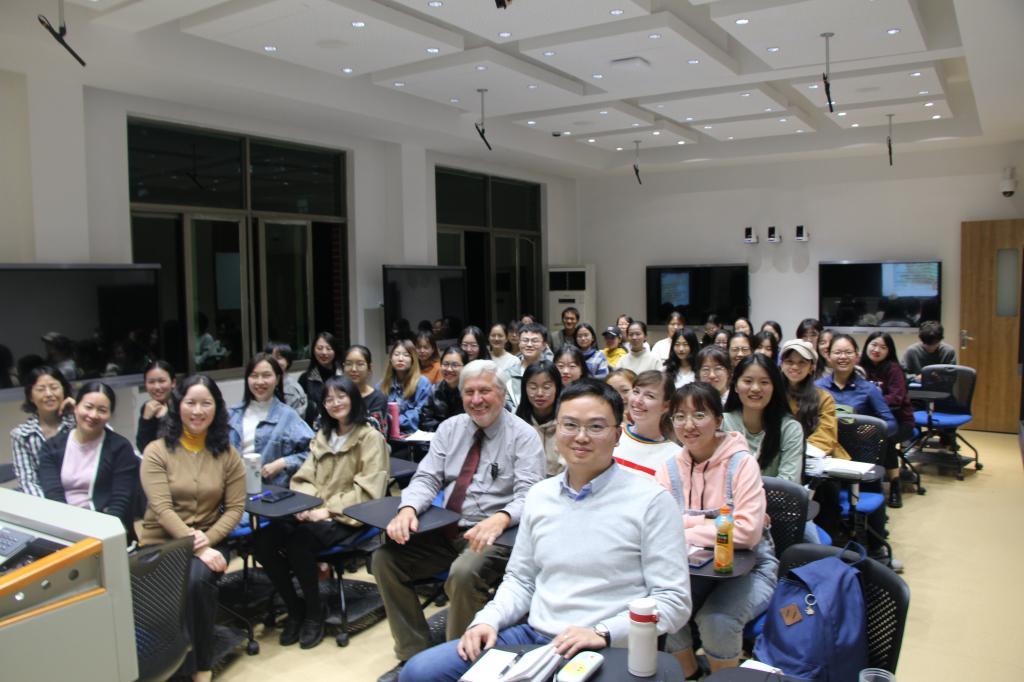 讲座结束后,卡卢茨科夫教授与俄语系师生拍照留念。