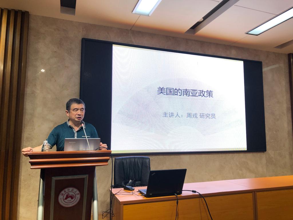 周戎在讲座中围绕美国对中国、对印度以及对巴基斯坦和阿富汗的外交政策三个部分展开论述。他在讲座中以生动的事例回顾了新中国成立以来与美国、印度和巴基斯坦等国的外交活动,结合时事分析了美国当下对南亚主要国家的外交政策。周戎以印度、巴基斯坦和阿富汗三国为重点,阐释了美国与印度合作的基础、美国对印度的防范以及美国对巴基斯坦和阿富汗的外交政策。他进一步指出,美国的南亚政策受中国在亚洲地位的影响,中国在南亚的外交策略亦受此影响。