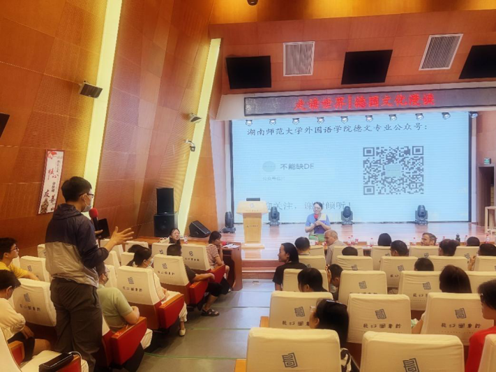 讲座导入部分,主持人播放了由德语专业拍摄的视频《长沙的经典德国形象·吧赫西点》,该视频是德国学术交流中心举办的“首届留德华杯·DAAD短视频大赛”的获奖作品。由于吧赫西点是普通长沙市民最熟悉的德国文化符号之一,视频立即激发了听众朋友们的强烈兴趣。