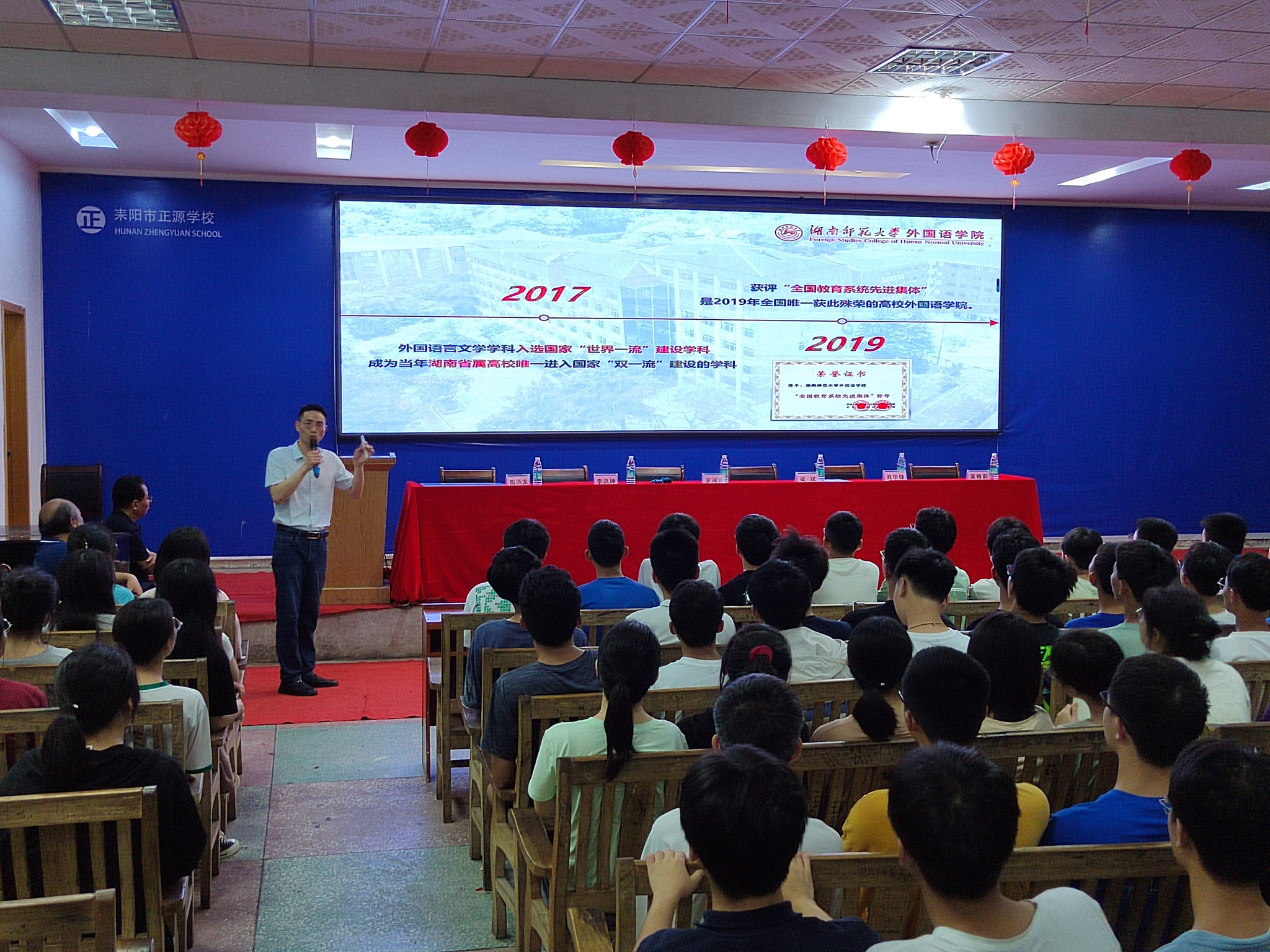 5月17日,我校优质生源基地授牌暨“名师进中学”系列活动在耒阳市正源学校举行。九州最新登录网址副院长梁斌、我校潇湘学者特聘教授肖华锋、英语系教师李洪坤、日语系教师吴雅莉,耒阳市正源学校校长罗湘云、副校长周济龙和该校高二、高三全体师生共计300余人参加本次活动。活动由正源学校校长罗湘云主持。