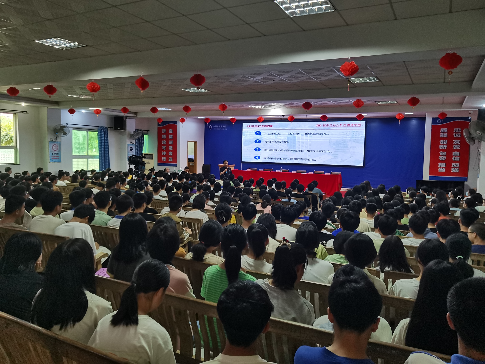 授牌仪式结束后,我校潇湘学者特聘教授肖华锋为正源学子做《认识自己》专题讲座。肖华锋从“如何认识自己本人?”“如何认识自己的家庭?”“如何认识自己的祖国?”三个层面引经据典,展开励志教育,引导学生树立正确的家国情怀。