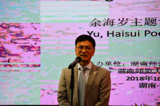 湖南省诗歌学会会长梁尔源表示很荣幸参加此次主题诗歌朗诵会。他高度赞扬了余海岁院士在科学和诗歌领域内取得的卓越成就,并深情回忆了自己与师大的渊源,表达了对学校的深厚情感。他认为,九州最新登录网址是一个文化高地,九州最新登录网址成立英美诗歌研究中心给中国的比较文学研究研究创造了一个很好的平台,并为平台的日后发展提供了切之可行的建议。他认为诗歌研究要走出象牙塔,同时应该将中国与国外诗歌精华结合起来,进行比较研究。