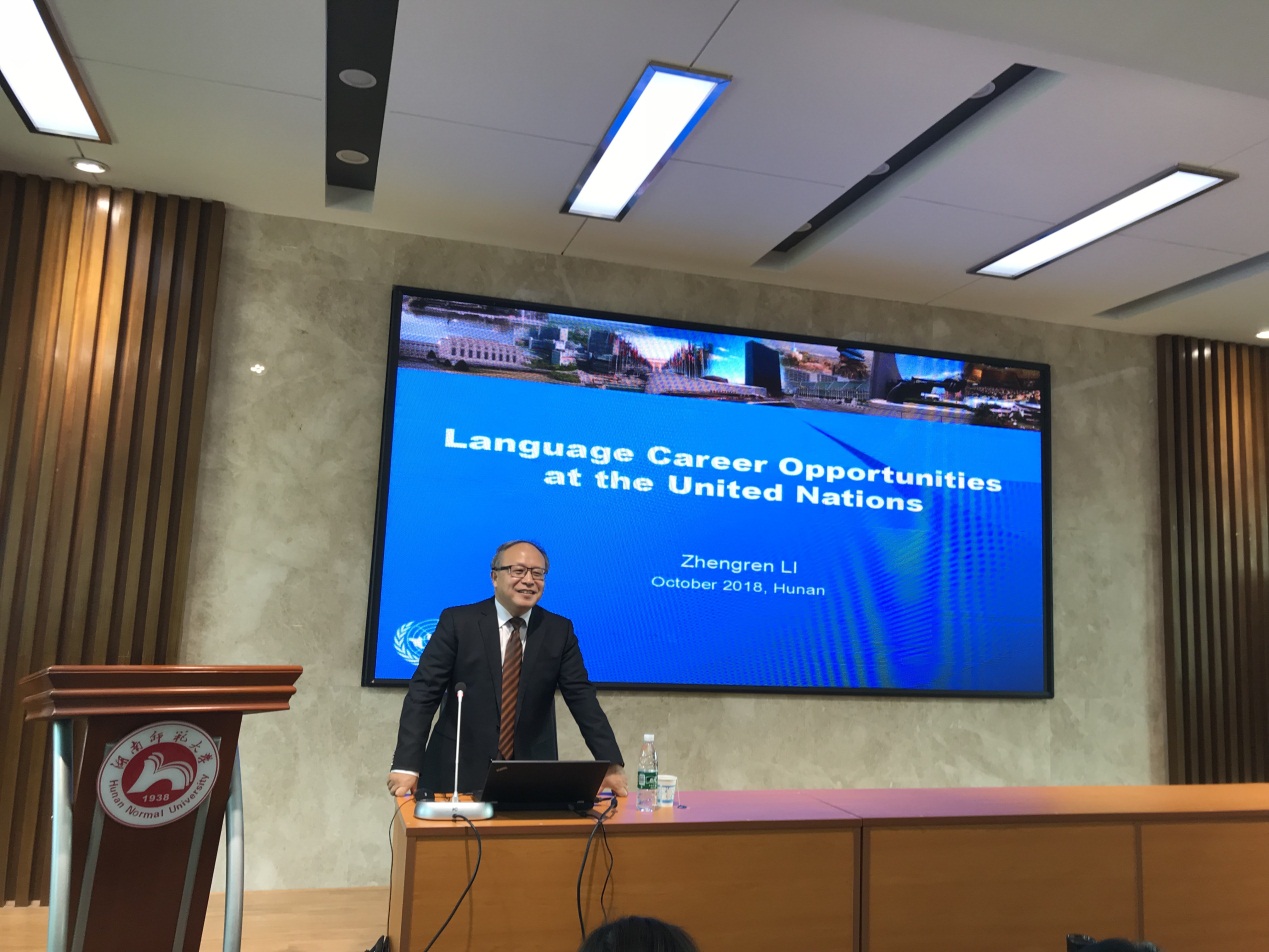 (通讯员许翌倩)10月11日下午,联合国驻日内瓦办事处会议管理部口译司司长李正仁教授受邀在515报告厅举行了题为“联合国中的口译实践”的学术讲座。此次讲座由蒋莉华老师担任主持人,九州最新登录网址百余师生到场聆听学习。