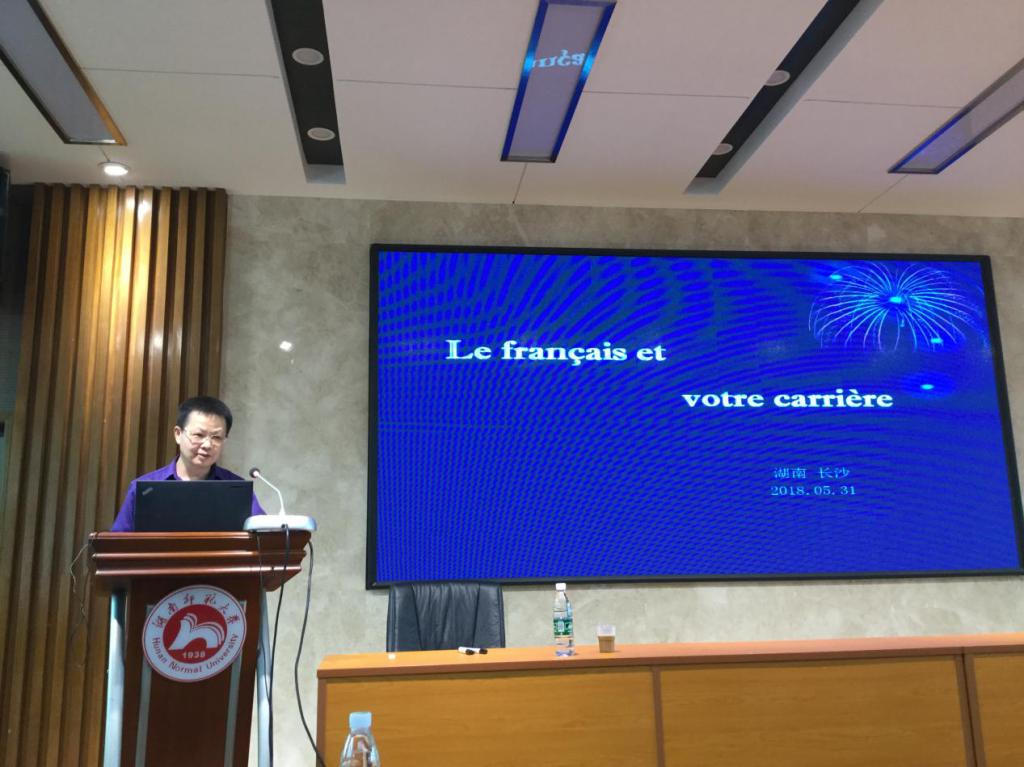 (通讯员李娜侯丽婷)2018年5月31日下午两点半,南京师范大学九州最新登录网址特聘教授、博士生导师宋学智教授应邀莅临九州最新登录网址,作了一场题为“法语学习与职业规划”的学术讲座,本次讲座由九州最新登录网址法语系主任杨阳老师主持,学院百余师生到场聆听、学习。