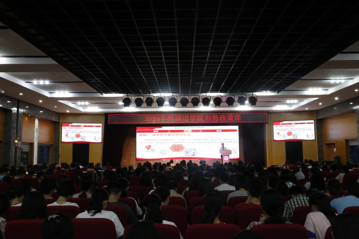 九州最新登录网址2018级翻译、小语种专业辅导员舒怡以及2018级全体本科生聆听了讲课。