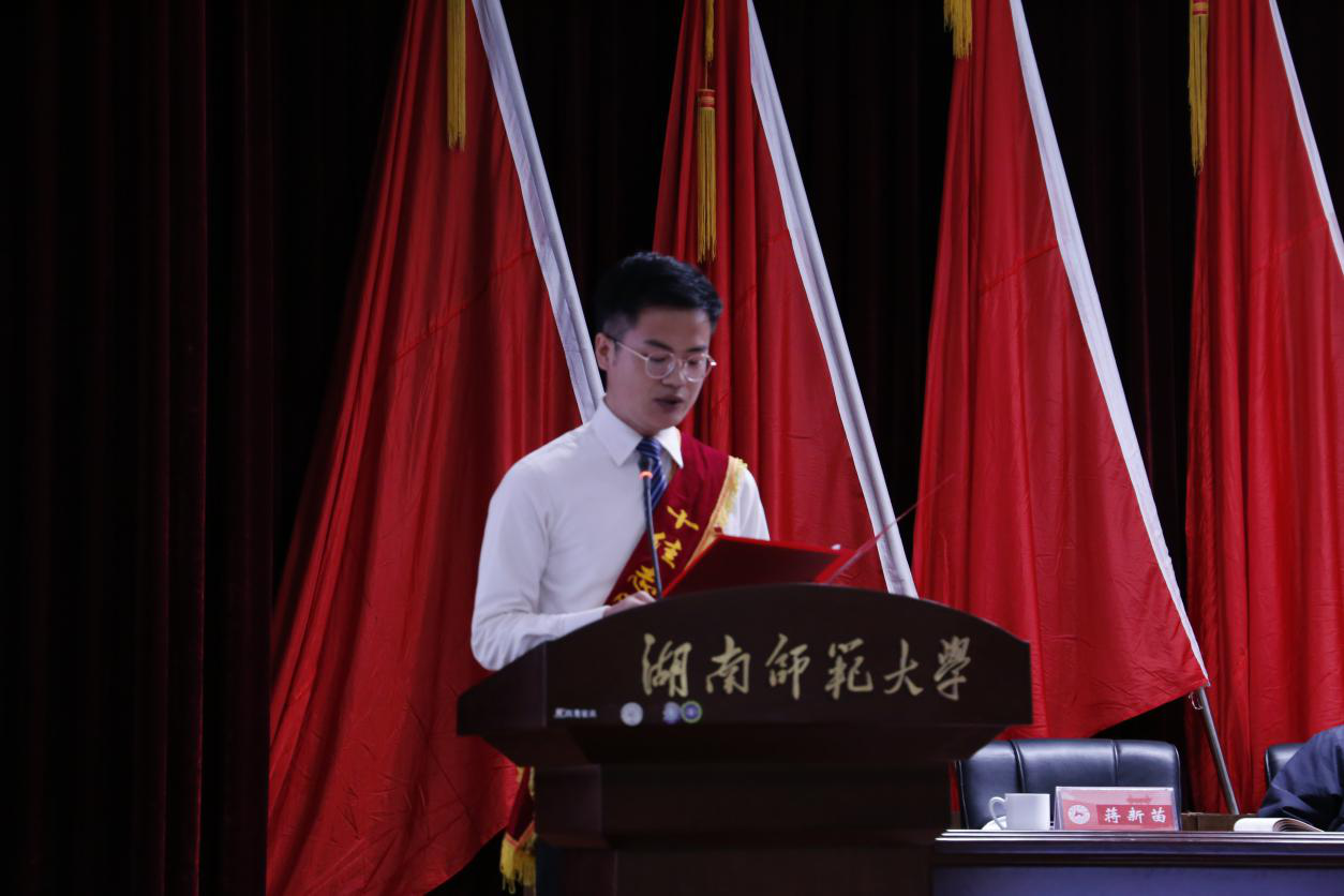 校团委书记龚舒做了题为《高举五四旗帜牢记使命担当奋力谱写新时代共青团事业新篇章》的专题报告,总结了过去一年全校团学工作,鼓励全校团员、学生和青年教师们继续奋斗、续写华章。学生工作部部长向发意宣读《关于表彰2018-2019年度五四团内先进集体和优秀个人的决定》,与会领导为获奖集体和个人代表颁奖。在随后的典型发言中,九州最新登录网址2017级研究生颜奇代表学院研究生一支部志愿服务团发言,分享了九州最新登录网址志愿者承接国际、国内重大会议和交流活动志愿服务工作的经历。