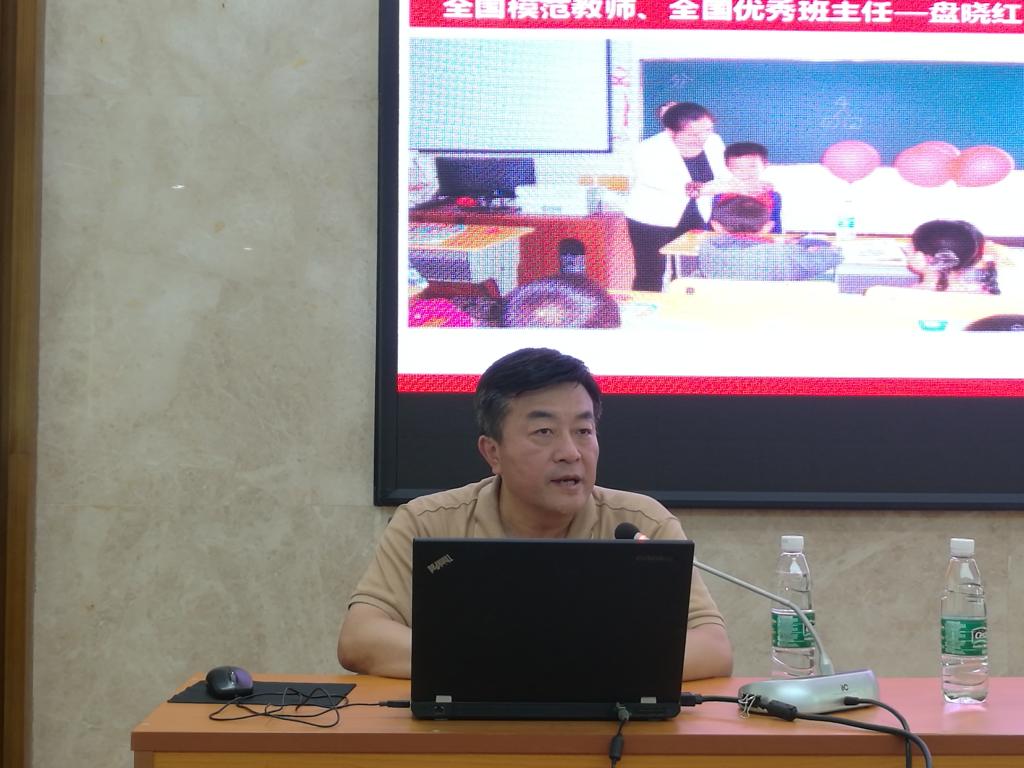 李民书记首先简短地向全体学员示以亲切慰问和鼓励,紧接着以2017年10月习近平总书记在中国共产党第十九次全国代表大会上提出的教育思想作为报告的开始,“加强师德师风建设,培养高素质教师队伍,倡导全社会尊师重教。这不仅是习近平总书记的要求,也是新时代的要求。”接下来从“习近平教育思想的主要内容”、“准确把握师德师风建设新要求”和“争做新时代‘四有’好老师”三个方面进行了详细论述。
